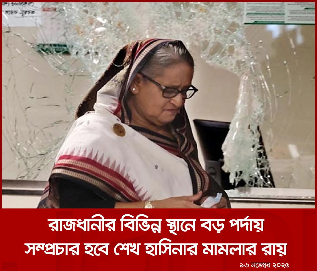 রাজধানীর বিভিন্ন স্থানে সম্প্রচার হবে শেখ হাসিনার মামলার রায়